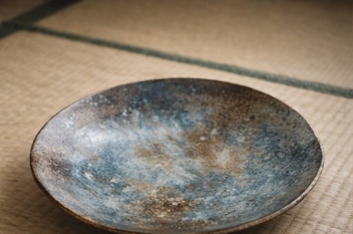 薪窯焼成による自然釉のゆらぎが美しい一点物の大皿。