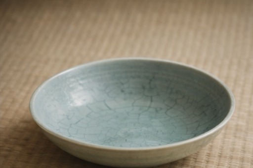 深みのある青磁釉が静かな存在感を放つ平鉢。