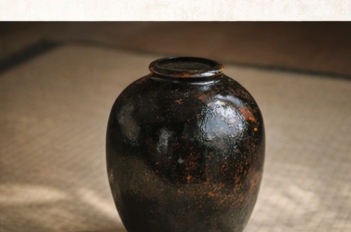 深い天目釉が艶やかに輝く存在感ある壺作品。